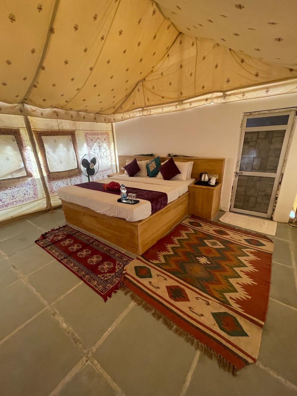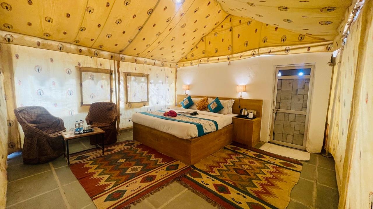 Desert camping in Jaisalmer is the perfect way to experience the charm of Rajasthan’s Thar Desert. Nestled amidst the rolling golden sand dunes, these camps offer a unique blend of adventure, culture, and relaxation. Guests can enjoy a warm welcome with traditional Rajasthani hospitality, camel rides to witness the mesmerizing sunset, and evenings filled with folk music, Kalbeliya dance, and cultural performances around the bonfire.
